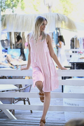 Tieto pyžamové šaty je jednoducho očarujúce. Pruhovaný dizajn je úplne trendy. Má volániky a sťahovaciu šnúrku so strapcami pri výstrihu. Model bez rukávov je úžasne vzdušný na teplé letné dni. Vrstvené volány dotvárajú celkový vzhľad. Mäkká bavlna v osvedčenej kvalite single jersey zaručuje vždy príjemný pocit. Materiál je tiež priedušný a ľahko sa udržuje.